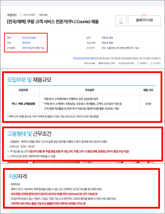 4. 반드시 채용 정보를 함께 캡처하여 첨부해야 합니다. 고용센터에서 채용 공고 상세내역을 첨부하라는 문자를 받았다면 아래와 같은 화면을 첨부해 주세요. 가장 필요한 정보는 지원자격입니다. 센터에서는 내가 해당 직무에 알맞게 지원했는지를 보고 취업을 실제로 할 마음이 있는지를 판단합니다.