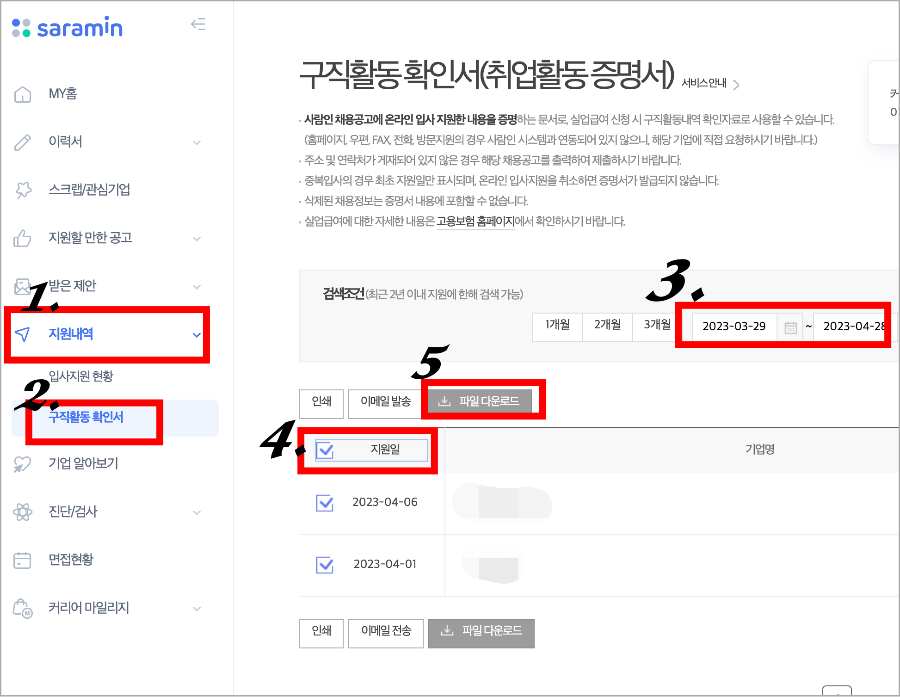 구직급여 신청을 위해 사람인에서 필요한 서류를 다운로드 받기