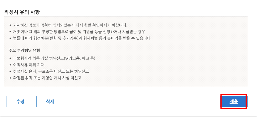 반드시 오전 중에 구직활동 신청서를 접수하시기 바랍니다. 혹시나 잘못 기입된 정보가 있거나, 부족한 자료가 있다면 고용노동센터 담당직원이 문자나 전화로 도움을 줍니다. 기일을 놓치거나 서류를 누락하여 구직급여를 받지 못하는 일이 생기지 않도록 반드시 오전 중에 신청서를 보내주세요.