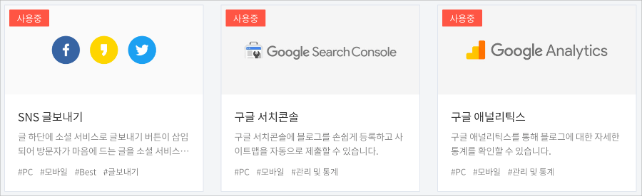 플러그인 설정 (SNS 글 보내기 - 구글서치콘솔 - 구글 애널리틱스 )